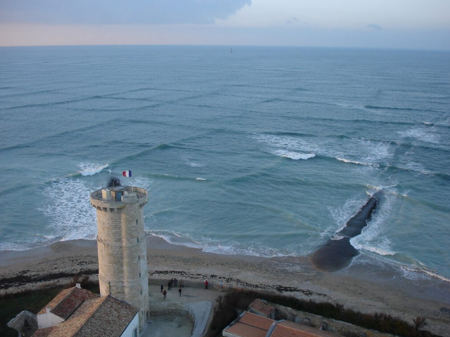 This phenomenon is very common along the western coast of France, at the Isle Rhe. However, as it is extremely dangerous to enter the water when it occurs, tourist get to witness the water grids from a lighthouse on the western part of the island.