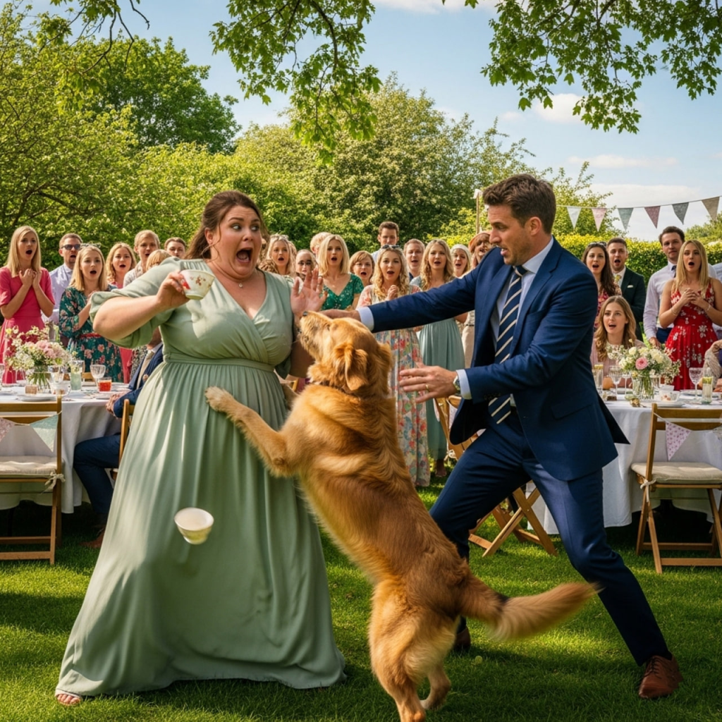 My dog, Koko, who had been lying calmly by our table, suddenly jumped up, charged toward the woman, and bit her on the arm. The woman screamed in pain and fear, trying to fight the dog off and begging us to remove him. Guests ran over, including my bride.