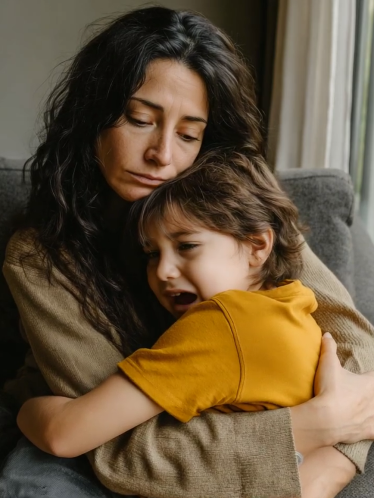 I ran to my son and pulled him out of bed, clutching him to my chest. He was crying inconsolably, his face buried in my shirt.