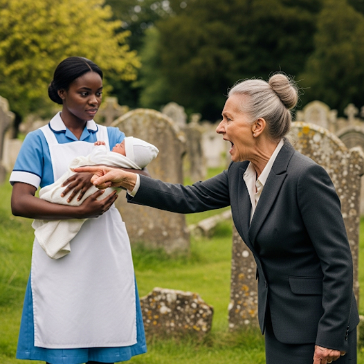 There, kneeling before William’s grave, was a young Black woman in a faded blue waitress uniform. Her apron was crumpled. Her shoulders trembled. In her arms, wrapped in a soft white blanket, was a baby — maybe a few months old.