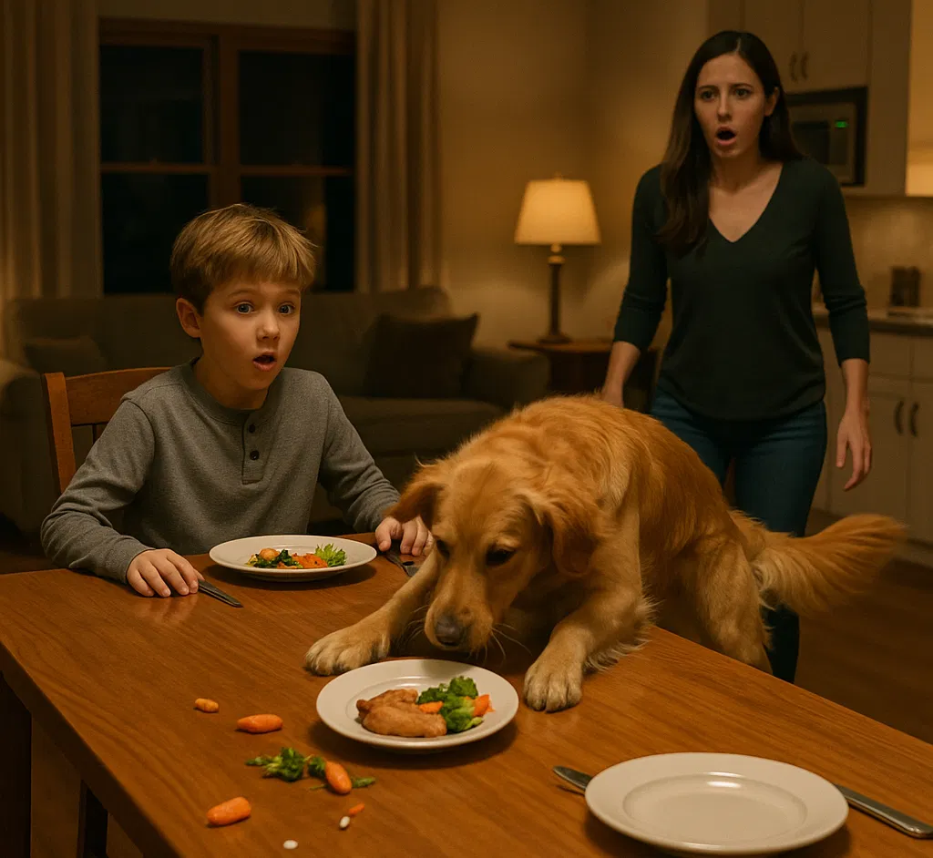 Our golden retriever, Daisy, was usually the calmest dog you could imagine. She would nap in the sun, follow my seven-year-old son Liam around like his shadow, and wag her tail politely whenever neighbors stopped by. But that evening, as we sat at the dinner table, Daisy did something completely out of character.