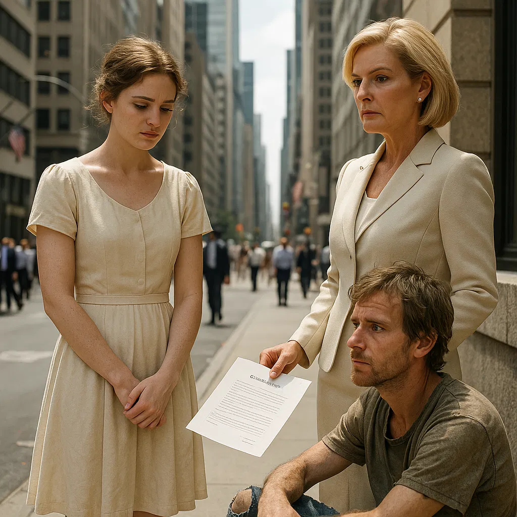 The scorching sun of New York mercilessly beat down on Fifth Avenue, where Ethan, a 28-year-old man with disheveled hair and tattered clothes, sat slouched against a cold concrete wall. His once-vibrant blue eyes were now dulled by exhaustion, the skin around them sunken from days without proper sleep or food. His ribs, sharp beneath his shirt, told a quiet story of hunger and pride.