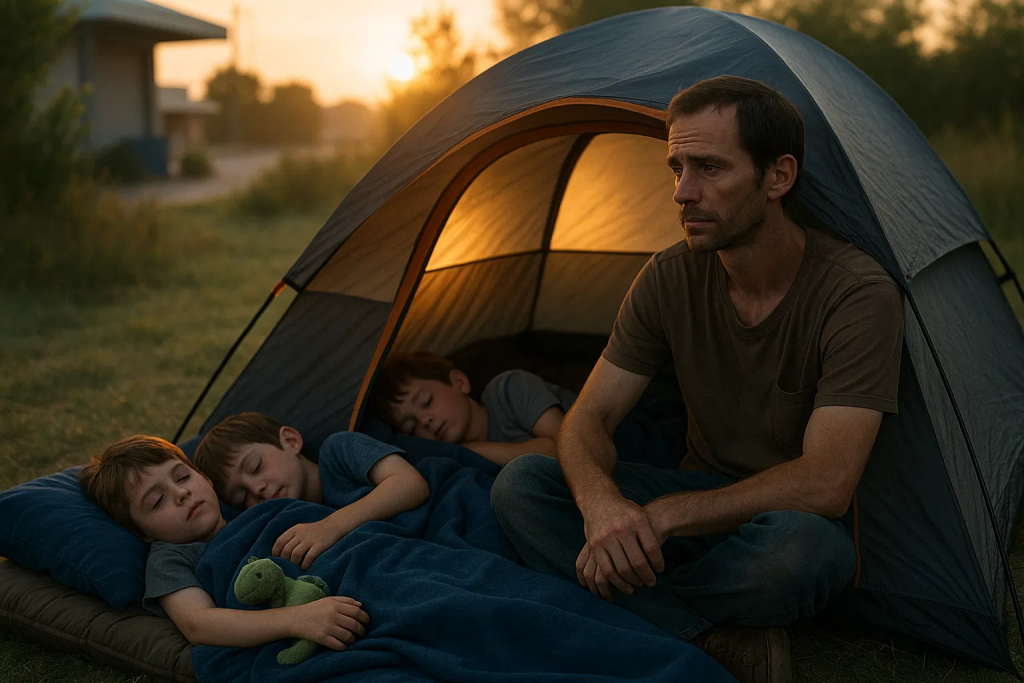 I told the boys we were going camping. “Just us guys,” I said, with my best brave-dad voice. Made it sound like an adventure. Like I wasn’t holding back tears after selling my wedding ring just to afford gas and a jar of peanut butter. Like I hadn’t spent the night before in the front seat of the car, trying to Google shelters without waking them up.