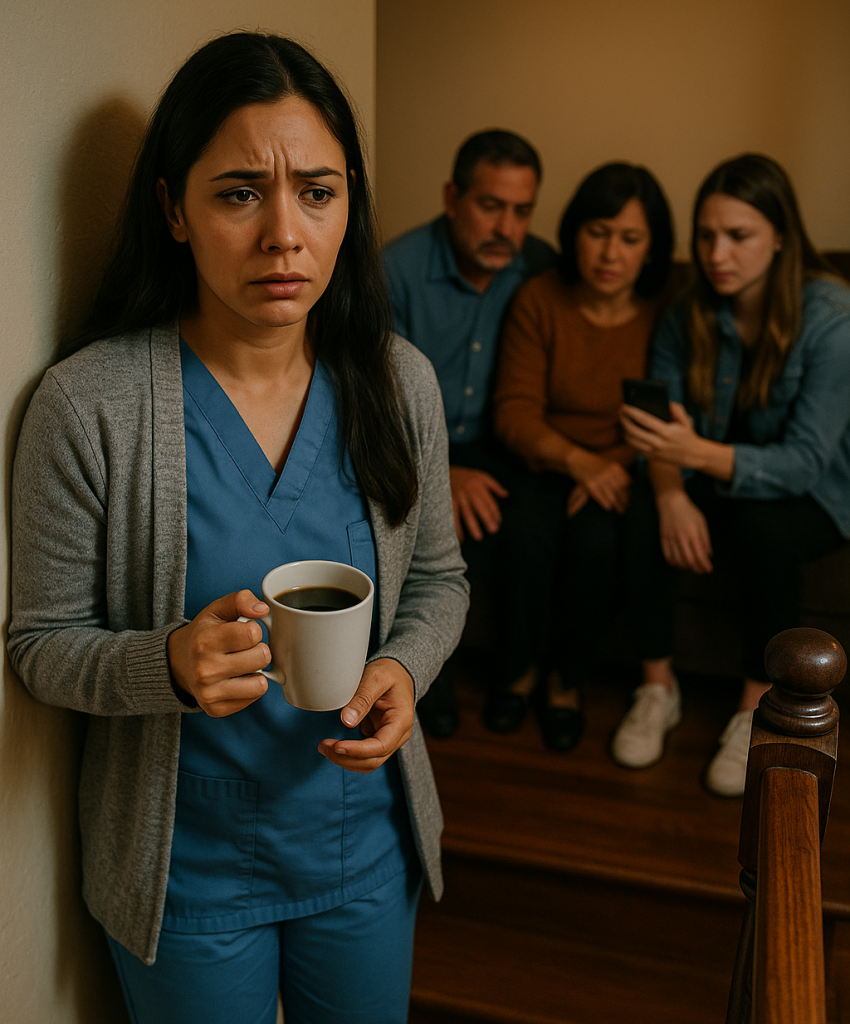 The smell of roasted coffee hung in the air as I paused halfway up the stairs, my cup trembling slightly in my hand. I had just come home from another exhausting night shift at the hospital.