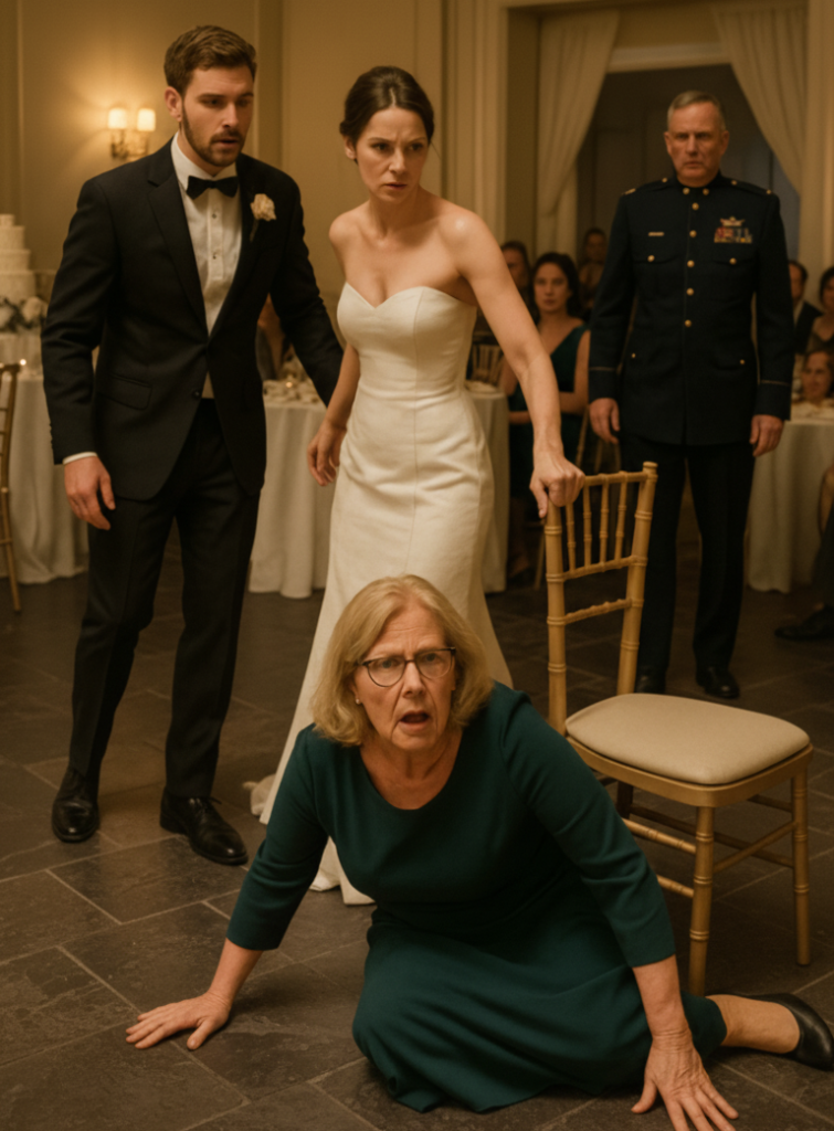 Her expression remained unchanged. Then, with theatrical flair, she yanked the chair out from beneath me. Gasps filled the hall as I hit the floor. The shock silenced everyone—until the double doors swung open.