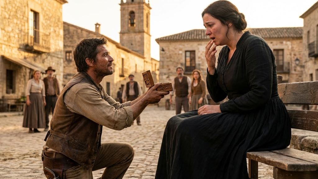 Elena felt a tremor run through her body, not from fear, but from an emotion she didn’t recognize, one she had thought dead and buried decades ago. Her eyes, once dull and filled with an ancient sadness, showed a glimmer of surprise, of confusion, even a spark of curiosity. No one, in the thirty years that the Widow had lived in the imposing and decrepit mansion at the end of the cobblestone road, had dared to speak to her, much less propose marriage in the town square.