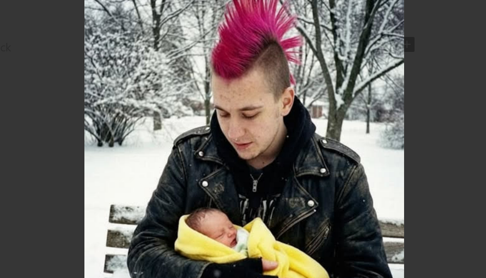 He brought the baby closer, wrapping them both in his leather jacket. Underneath, he was wearing only a t-shirt.