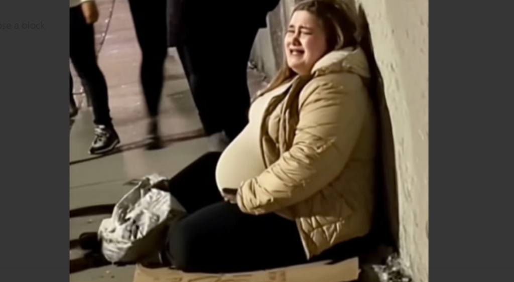 She couldn’t have been more than 20, maybe 21, with that enormous pregnant belly that stretched her overly thin coat, one hand resting on the wall and the other gripped in the middle as if she were holding on.