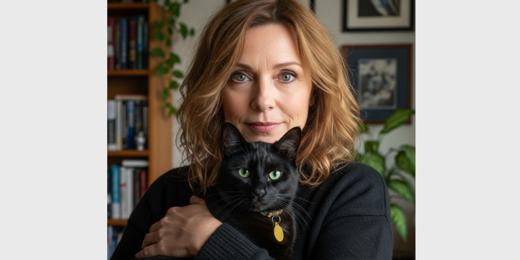 That’s when I saw it. A black cat, smooth as midnight, perched on the stone wall between my garden and the woods.