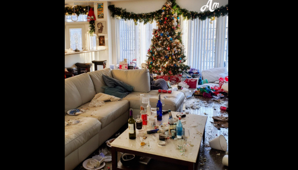 When we returned, it looked like a stranger’s party had broken out in our living room.