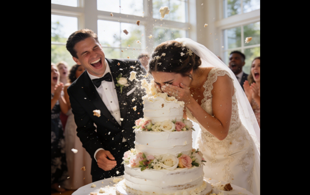 The ceremony was emotional, or at least it seemed that way. But the moment of truth, the instant that would change Valeria’s destiny forever, arrived during the reception. They stood before the monumental three-tiered wedding cake, a masterpiece of Chantilly cream and sugar flowers. The photographer gave the signal. Valeria took the ceremonial knife, smiling for the camera, awaiting the traditional cut and the symbolic bite.